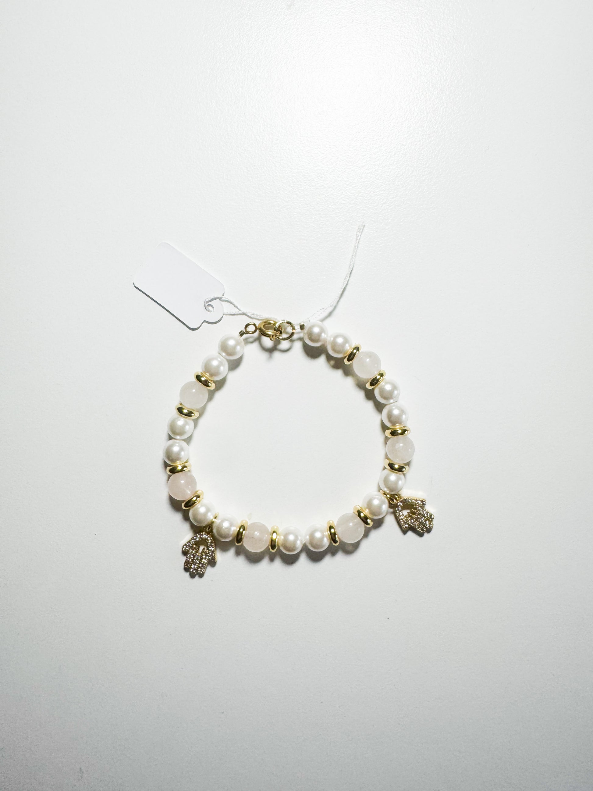 Bracciale con mano di fatima madreperle e quarzo rosa