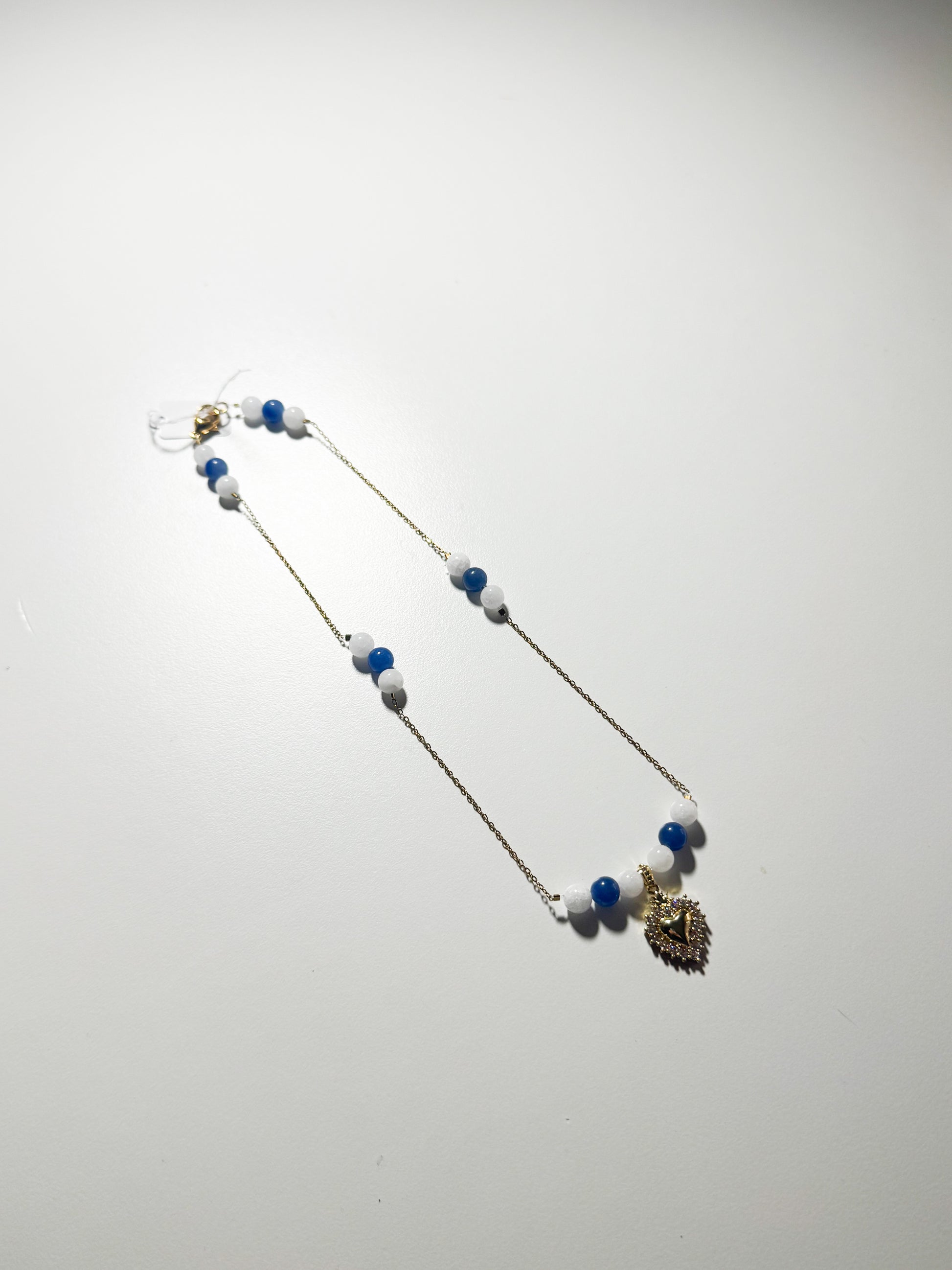 Collana cuore sacro con giada bianca ed avventurina blu